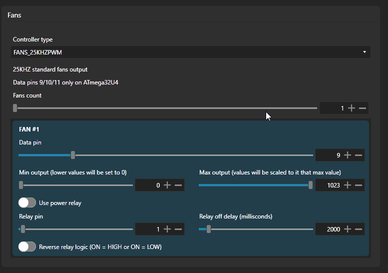 * If you want to use custom logic or want custom code you can export the firmware and customize `FansCustom.h`